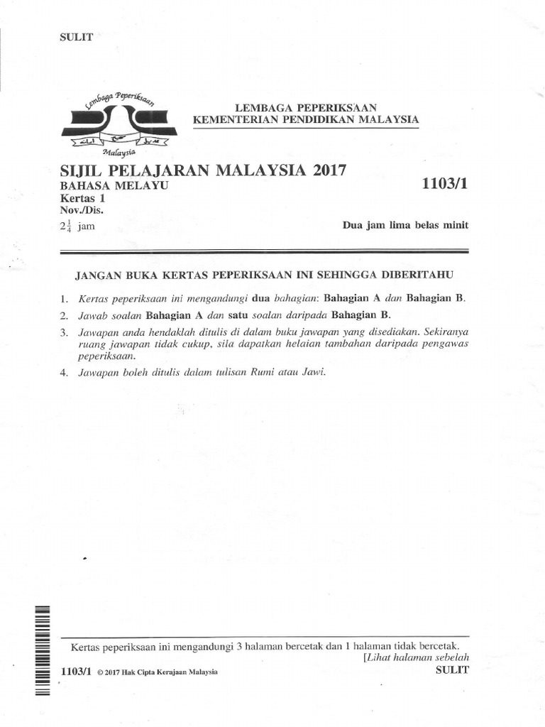 Berikan pendapat anda tentang kebaikan amalan tersebut. Soalan SPM untuk Bahasa Melayu Standard dipetik daripada teks prosa klasik di Tingkatan 4 dan 5 iaitu Kepimpinan Melalui Teladan dan Burung Terbang Dipipiskan Lada. Fungi kesan rumah hijau untuk memanaskan bumi cuma pada masa kini.